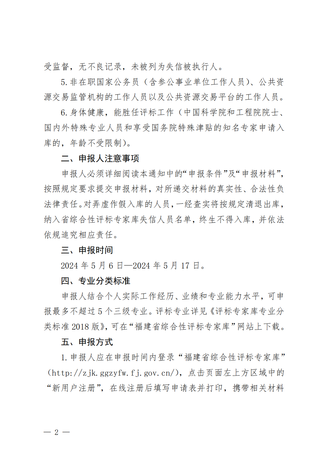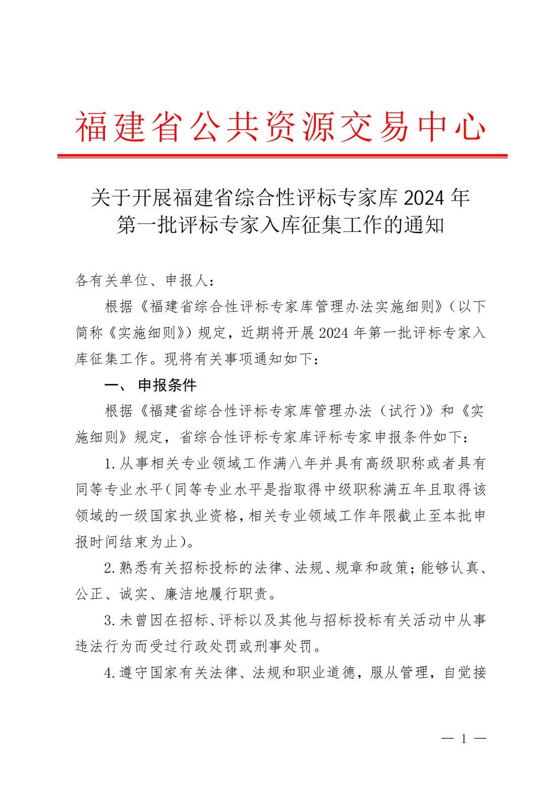 关于开展福建省综合性评标专家库2024年第一批评标专家入库征集工作的通知